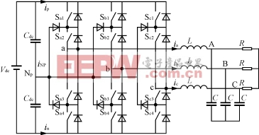 近年来,在高压、大功率变换电路中,一种新型的变换器——箝位二极管式电压型三电平逆变器(如图1所示),引起了越来越多的关注。它不仅能应用于大功率高输入电压的逆变场合,而且能应用于如静止无功补偿、电力有源滤波器等电力电子装置中。归纳起来,三电平逆变器主要有两个显著特点: