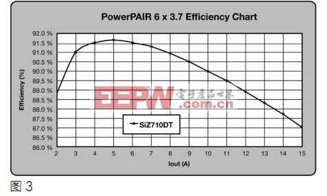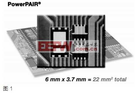 一种称为PowerPAIR的封装形式的外形尺寸小于单芯片的6x5封装(PowerPAK SO-8),最大电流等级为15A。在笔记本电脑中,这样的负载电流一般要使用两片功率6x5封装,算上印制线和标识面积,以及放置两个器件后,所占面积至少是60mm2以上。这种功率双片封装的尺寸是6.0mmx3.7mm,所占用的电路板空间为22mm2。所占的电路板空间减少了63%,这对电源工程师来说是益处多多,因为留给他们设计电源电路的空间是越来越少。这种优点是传统SO-8双片封装类型所不具备的。