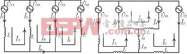 首先计算三次谐波电压单独作用产生的环流,图3是三次谐波电压作用计算环流等效电路图。为了对两种情况下的计算结果进行比较,等效电路图分为图3(a)和图3(b),其中图3(a)是无平衡电抗器Lp等效电路图,图3(b)是有平衡电抗器Lp等效电路图。
