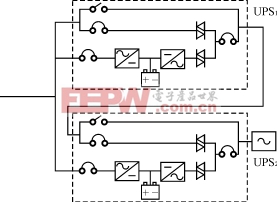 ——当主机内部出现故障,比如直流电压过低、直流母线过热、逆变器输出电压超出允许范围、逆变器失效、逆变器严重超载等,或者主机由电池供电时,电池电量耗尽,此时UPS2的输出端静态开关会自动切换至旁路,由UPSl的输出提供负载所需电源。