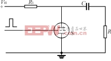 由键盘键入所要求的延时时间,通过8031芯片内部程序控制延时器所要求的动作时间。当外触发信号输入时,外触发控制电路开始工作,输出一个脉冲信号触发延时电路,延时器开始计数,当达到所设定的时间时,延时器停止工作,同时输出一个脉冲信号,触发驱动电路,使驱动电路输出一个正脉冲信号,使开关管S导通,储能电容C经S向负载电阻放电(见图2),从而在与同轴电缆相匹配的负载上获得与直流高压幅度相同,极性相反的高电压脉冲。