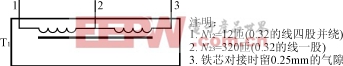 主变换器电路主要是由IC1(MAX641/642/643)、变压器T1以及V2等元器件组成的单端反激式升压电路。其电路的核心部分为MAX641/642/643,所以这部分电路的工作原理分析以及MAX641/642/643的技术参数及其应用请查阅文献[1]。这里只给出高频自耦升压变压器的技术资料,以供同行们在制作时参考。铁芯选用4kBEE型铁氧体,骨架选用与铁芯对应配套的EE19型立式骨架,其技术参数如图3所示。