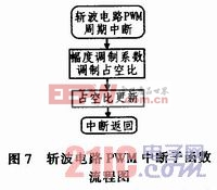 在本函数中斩波电路的PWM中断使用了TPM2中断,在此中断中使用了幅度调制系数去调节斩波电路的PWM波的占空比,进而实现电压的跟踪功能,最终是实现最大功率的跟踪。斩波电路PWM中断子函数流程图如图7所示。