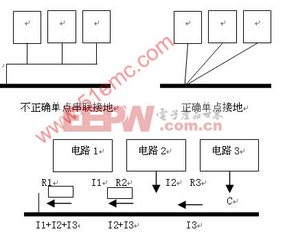 ●仔细选择接地点以使环路电流、接地阻抗及电路的转移阻抗最小;
