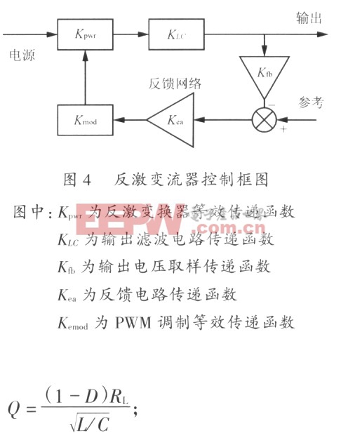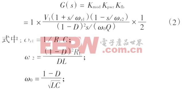 反激变流器的控制框图如图4所示。在设计反馈网络前,假设PC817的电流传输比CTR=100%,而且因为TOPSwitch的控制是电流模式,所以PC817构成的传递环节不影响整个系统的频率响向应,令Kea=1,并且所有设计采样点在输出的小LC滤波环节之前。此时,开环传递函数为V1为