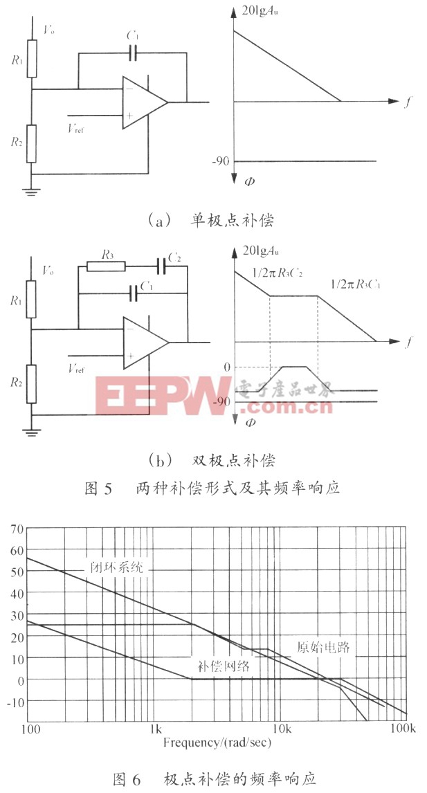 此时带宽处的相位裕度为180一90+10一46=54°,满足工程上的要求。在低于OdB带宽后,曲线为一40dB/decade,这样增益迅速上升,低频部分增益很高,使电源输出的直流部分误差非常小,并且有很好的负载调整率和电压凋整率。