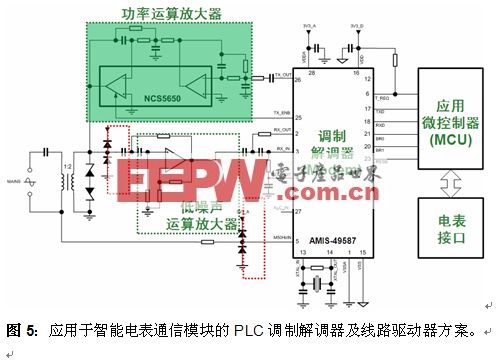 例如,安森美半导体推出了支持2.4 kb的更高半双工可调节通信速率、符合IEC61334-5-1标的AMIS-49587高集成度低功率PLC调制解调器方案,以及能驱动高达2 A电流的高能效的A/B类低失真线路驱动器——NCS5650,能够很好地配合智能电表PLC调制解调器及线路驱动应用。