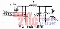 图2中,当开关管导通,整流管截止时,忽略开关管的导通压降,电感L两端的电位为VIN和输出电压VO,且近似保持不变,故电感电流线性增加,此时在电感中储存能量。若电容C两端的电压比输出电压略低,则电源还需为电容充电,在电容中储存一定的能量。此过程负载消耗的能量由电源提供。一旦开关管变为截止,整流管导通,电感L中的磁场将改变其两端的电压极性,以保持其电流方向不变。忽略整流管上的压降,电感L两端的电位变为零和VO且近似不变,电感L中的电流线性下降,其中储存的能量提供给负载。同时,当VO有所下降时,电容C也为负载RL提供部分能量。可见,这一过程负载RL消耗的能量由电感L和电容C提供。总之,Buck变换器就是用电感L和电容C作为储能组件,将能量以离散的形式由输入传到输出。其中,控制芯片提供反馈控制用以实现恒流输出。