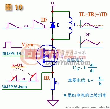 关系有了,其实坡度的信息也已经有了。电流IR已经通过Rs及放大器处理得到了,就是给到3842芯片P3-Isen的信号,最大幅值是1.0V。那么下面的问题是,如何把混在取样电流信号里的坡度提取出来,如何换算成电感的数值。