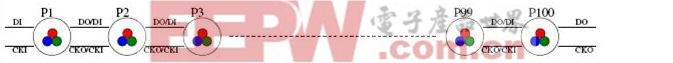 为了实现长距离的级联信号传输, WS2703在SDO和CKO数据时钟输出端口集成了具有强驱动能力的推挽输出电路,在2MHz的时钟频率下能够实现6米的驱动距离.