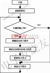 系统控制软件由主程序、键盘扫描程序、显示程序、延迟时间补偿程序等子程序组成,主程序流程图如图7所示。
