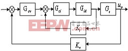 电压环的补偿网络是把已经设计好的电流内环看做电压调节系统中的一个环节来进行。就是说,设计电压补偿环节的时候必须先把电流环闭合,控制对象是输出误差电压控制信号到变换器输出电压的传递函数。对电压环来说,其功率级的传递函数包含电流环和负载。其系统控制框图如图6所示。