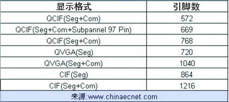 4.LCD控制/驱动电路测试技术。例如,多引脚对应能力;高速数据传送;高精度测试;高电压对应。表1为LCD 控制器驱动常见引脚配置情况。