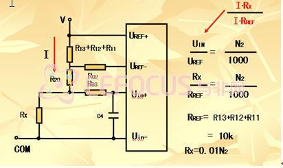 若RX= RREF则N2=1000,把小数点点在百位即可