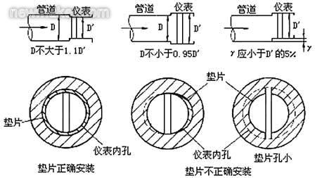 ③ 密封垫不能凸入管道内,其内径可比传感器内径大1~2mm;