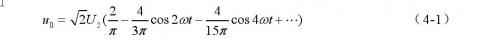 式中,U2是电力变压器副边的交流电压的有效值,ω= 2πf,f是市电频率,u0中包含了直流平均成分U0,其值为付氏级数的第一项,即