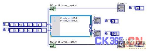 DIFF函数返回两个集合中去除公共部分余下的元素。OPENG中的“过滤一维数组”函数实现的正好是DIFF函数的功能,如下图所示: