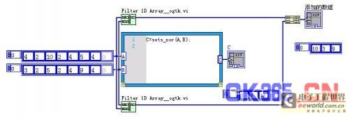 XOR集合函数返回一个集合,该集合中的元素要么属于输入集合1,要么属于输入集合2.。对于LABVIEW中的两个一维数组,返回两个数组合并后去除公共元素后的数组。
