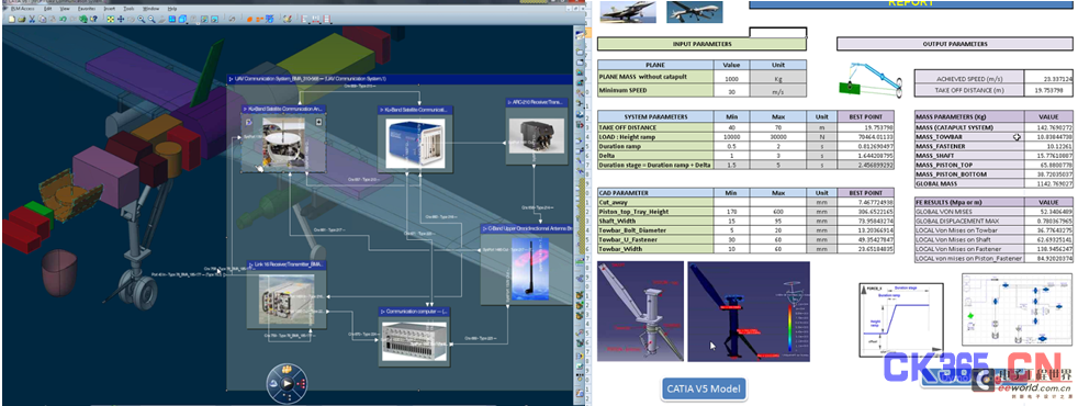 的关联、支撑飞机系统架构的优化设计基于CATIA V6形成,其中系统功能模型基于Dymola建立。 • 波音无人机竞标项目 波音飞机公司为了竞标美国国防部的无人机项目,基于达索CATIA V6开发平台,实现了需求收集并将需求分解为产品功能;再基于Dymola的机电液建模能力创建了虚拟铁鸟的功能模型、完成功能验证;接着基于SLM集成设计和仿真分析流程,验证无人机在航母起降对起落架结构和发动机性能的影响;然后通过Delmia虚拟生产线,模拟生产节拍和产能瓶颈;最后通过3Dvia模拟了无人机在美国航母部署状况;全部项目通过ENVOIA实现虚拟项目管理,从而更全面更系统的展示了无人机系统的研发流程,并通过仿真有效的进行了验证。 美国无人机研发过程示意图 • 虚拟铁鸟 某飞机设计研究院去年开始实施全院级别的信息化建设项目,目前恒润正在协助实施第一期项目,期望通过虚拟铁鸟项目,集成现有的大飞机包括环控、燃油、液压、发动机、电气等子系统模型,通过FMU接口技术,实现Dymola、Simu 虚拟铁鸟项目示意图 • 飞控系统联合仿真实验室 航天某飞控总体所,希望建立飞控系统联合仿真实验室。恒润科技协助其进行了联合仿真实验室的规划,实现控制算法C、惯导Simu 实验室网络架构示意图