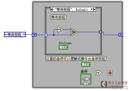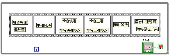 这样做和上面的顺序结构比较,好处是显而易见的,整个过程只有一个循环,而上面的顺序结构实际每个FRAME都是一个循环,这样,如果有急停按钮,我们可以在CASE外面检测急停,如果急停,可以马上停止循环,而在顺序结构中,需要在每个FRAME检测,并逐个退出.
