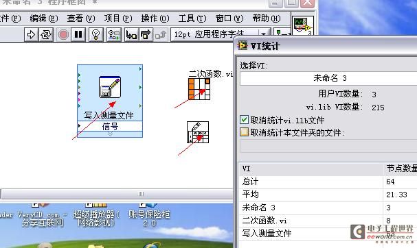 上图中,顶层VI有三个节点,但是EXPRESS VI内部包括53个节点,自己做的SUBVI内部包含8个节点,而WRITE SPREAD SHEET尽管内部包含大量操作,我们可以打开跟踪,但是它只是一个节点,从这里可以看出,经管EXPRESS VI使用非常方便,但是LV没有把EXPRESS VI称为函数,而写文本文件VI尽管内部非常复杂,但是仍然是一个节点.