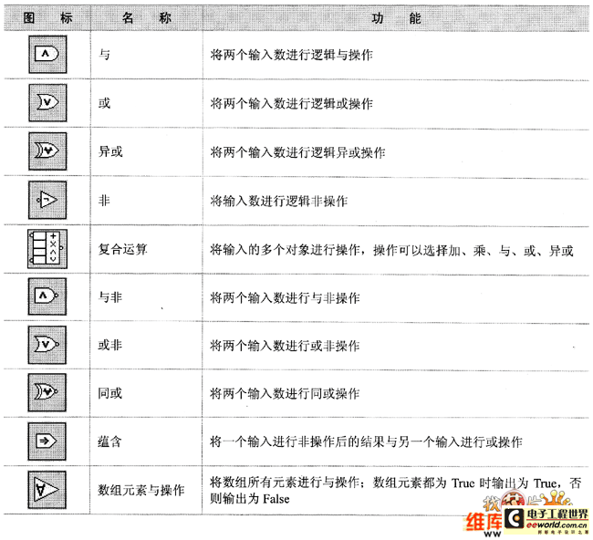 布尔子选板中的布尔对象操作节点名称和功能如表1所示。其中所有函数的操作数应为布尔数据或数值型数据;如果操作数为数值型数据,则将数据转换为二进制按位进行操作,然后转换成十进制输出。