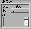 该例的目的是学习使用“索引与捆绑簇数组” 然后给他们赋如图所示的值,如图: 然后连线,并创建显示控件,如图: 运行,结果如图: 说明:该函数从输入的3个数组中依次取值,相同索引值的数据被攒程一个簇,所有的簇构成一个一维数组。插接成的数组的长度与所有输入数组中长度最短的一个相等,多余的数据被丢弃。 该例看起来好像是不可以实现的,因为在数组的学习中,已经知道数组的成员不可以是数组。这里将学习把一维数组当成一个簇,然后通过建立簇的数组,因为簇数组的每一个成员都是一个簇(即一维数组),从而实现建立“数组的数组”的目的。 Error簇 Error簇是一类很重要的簇,许多的控件里都有“错误输入”和“错误输出”这两个簇的端口,通常来讲,当一个VI中间出现错误而导致不能运行时,可以在出错的控件的“错误输出”端子创建一个显示控件,则可以让程序继续运行,如图所示,即为Error簇: 而Error簇更重要的应用在于,它可以控制控件执行的先后顺序,也可以通过Error簇来控制循环的终止。如图: 当信号的发生出现错误的时候,就可以把循环停止。