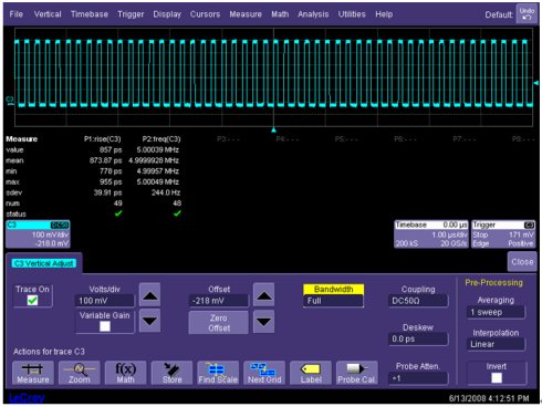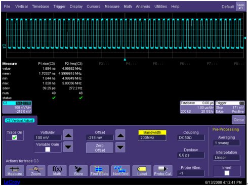 图14,带宽限制到200MHz时测量5MHz时钟上升时间