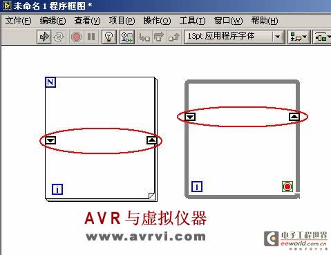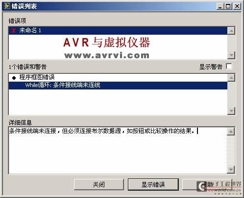 注意:While循环的条件端子一定要有连线,否则程序无法运行!如图: