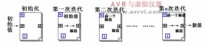 右端子(带向上箭头的矩形)在每完成一次迭代后存储数据,移位寄存器将上次迭代的存储数据在下一次迭代开始时移动到左端子(具有向下箭头的矩形)上。移位寄存器可存储任何数据类型,包括数字,布尔,字符串和数组,但连接到同一个寄存器端子上的数据必须是同一类型。移位寄存器的类型与第一个连接到其端子之一的对象数据类型相同。