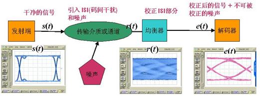 串行信号由发射端通过传输介质或通道(如:背板、电缆、电路板)向接收端发送。当信号速率增加时,信号所经过的通道或传输介质产生衰减,使信号在接收端出现失真,从而导致眼图部分或完全闭合,使接收端无法正确提取或恢复时钟/数据。为了使眼图重新张开,必须正确提取或恢复时钟和数据,均衡技术就是为解决这一问题而存在的。