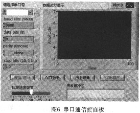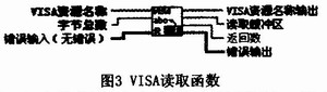 图3。 其中“字节总数”是要读取的字节数量。“读取缓冲区”包含从设备读取的数据。“返回数”包含实际读取的字节数。 (3)VISA写入函数。该函数为串口写子程序,用于对串口设备进行写操作。主要参数如图4所示。 其中“写入缓冲区”包含要写入设备的数据。“返回数”包含实际写入的字节数。 此外,LabVIEW中与串口通信有关的还有VISA关闭函数与VISA串口字节数函数,分别用于关闭串行设备的任务或事件和计算进入串口缓存区中的数据字节数。 2.2 LabVIEW与PLC串口通信实现 按照通信协议使用专用的九芯插头和PC/PPI电缆,将PC机的COM1口与S7-200的自由通信口直接连接。由于电缆上带有RS-232/RS485电平转换器,连接十分方便。LabVIEW进行串口通信的基本步骤为: (1)初始化端口。利用VISA配置串口函数设定进行串口通信的端口号、波特率、停止位、校验、数据位。 (2)读写端口。利用VISA读串口函数和VISA写串口函数从串口中读入或输出数据。由于LabVIEW的串行通信子程序只允许对字符串的读写,因此在数据处理时,必须进行字符串与数字之间的正确转换。 (3)关闭端口。当对串口操作完成后,需要关闭串口,以释放硬件资源。 3 串口通信实现 按照上述过程,设计了监控系统程序,程序框图与前面板分别如图5、图6所示。 其中PC机与PLC串口通信程序结构分为3个部分: (1)串口初始化。根据通信协议设定,通信端口:COM1,波特率:9600bps,1位起始位,8位数据位,1位停止位,无奇偶校验,无软件握手协议。 (2)发送命令和读取响应将命令通过串口COM1发给PLC,并接收来自PLC的响应信息,如果响应正常(状态信息为O1或02),就将所得数据做显示、计算分析、存储等后续处理,以便用于设备实时控制和在线状态监测;如果响应不正常则退出程序(03或04),用户重新输入命令开始工作。 (3)关闭串口。调用LabVIEW提供的VISA关闭串口函数实现串口资源的释放。 当程序运行时,LabVIEW首先向PLC发出一个读请求,然后检测输入缓存中的字节数;当达到预定字节数时,LabVIEW利用读串口函数将输入缓存中的字节一次性读出,然后继续发出一个读请求到PLC。如此循环,直至结束。本程序还采用了状态机的方法进行状态的判断和选择。 4 结论 PLC自由口通信方式具有与外围设备通信方便、自由,易于微机控制等特点,这一通信方式被越来越多的监控系统所采用。利用PC机或工控机的串口,按照自由通信协议,结合地址映射技术在LabVIEW平台上开发出串行通信模块,可以很方便地实现主机与PLC的串行通信,对PLC的内存单元进行读写操作,从而实现对PLC的监控。本文所提出的设计能够方便地应用于基于PLC的工业监控,具有开发方便、扩展灵活的优点。