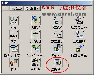 建立了全局变量以后就可以在其他程序里面调用它,方法是在程序框图上选中“选择VI...”,如图: