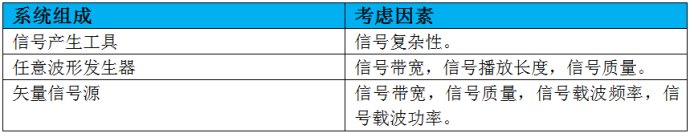 宽带仪器产生宽带信号的考虑因素参考表2。对于信号产生工具,主要考虑其是否能够产生足够复杂的信号,以满足测试需求。最好工具具备仿真的能力,可仿真复杂环境下的数据。同时最好支持各种前期经过设计和验证的库,比如雷达库,通信信号库,导航库等,这样可以快速和标准化的产生各种复杂信号。SystemVue就是可以满足这种要求的信号产生工具,具备复杂系统的仿真设计能力,技术专家已经设计好了许多库,满足各种信号产生的要求。