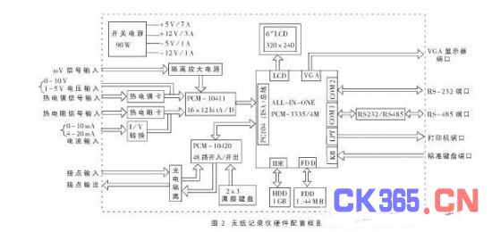 多功能无纸记录仪硬件配置示意图见图2。本记录仪开发无需专用开发环境,只需在本配置上