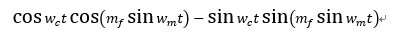 从频域图中可以看出,载波信号的频率被调制,原本为双峰的余弦信号,现在经过了调制为多个峰值并且其中一个峰会和基带信号的频率一致。也就会出现正弦信号为低峰的时候,调制后信号频率低间隔比较稀疏的结果