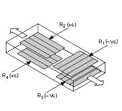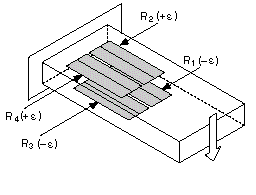 - R4是用于测量伸展应变(+ε)的工作应变计