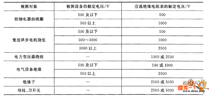 表2 电气设备绝缘电阻及应选择绝缘电阻表的电压等级