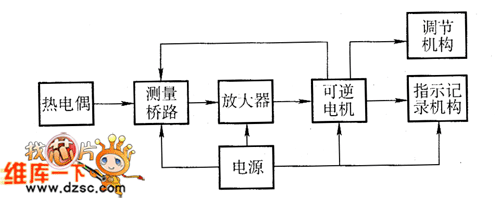 电子电位差计尽管型号品种不同,但其测量原理和基本结构基本相似,如图1所示。它由热电偶、测量桥路、放大器、可逆电机、指示记录机构和调节机构、电源等部分组成。