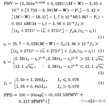 通过反应人体对热平衡的偏离程度的人体热负荷得出PMV指标,计算公式如下: