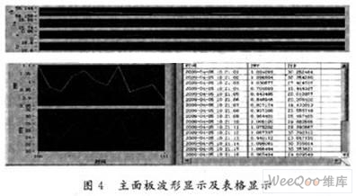 通过生成表格和波形图来显示在线数据。由于电子表格和波形图输入必须是数值,而读取缓冲区的数据是字符串,在程序设计时必须对字符串与数值进行转换,才能在波形图中显示。