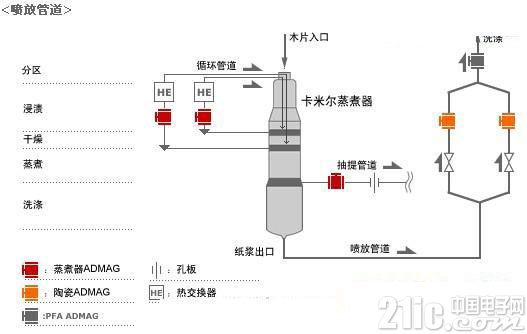 左侧:新型蒸煮器电磁流量计安装在循环与抽提管道中/