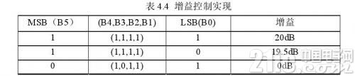 PGA870的增益控制实现方式如表4.4所示,表中未列出全部控制组合,其增益按B0至B5变化组合以0.5dB步进。