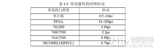 下表4.5是常用的一些器件,在很多设计中倾向于直接由数字器件(FPGA,MCU,DSP)产生一个时钟来作为ADC的采样时钟,这也是为什么ADC精度总是达不到手册上描述的指标的原因,时钟因素制约了系统性能的提高。