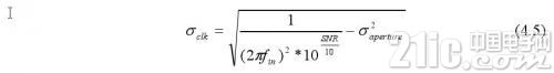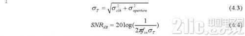 其中,Tσ表示总抖动,clkσ表示采样时钟的抖动,apertureσ表示ADC的孔径抖动,in f代表输入信号频率。