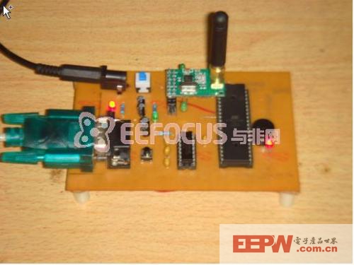 接受部分控制系统采用爱特梅尔(Atmel)公司高性能低功耗的ATmega16单片机,其通过SPI接口实现和Nrf905通信,单片机通过SPI 接口读取nRF905接收到的数据并通过串口将数据发送到上位机软件进行显示和分析。