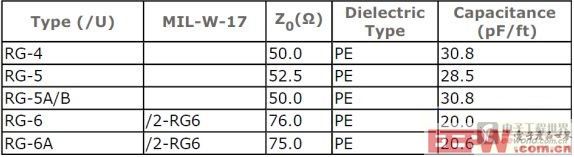 络必然存在一个工作频率范围,由于RG的存在,这个网络必然存在损耗,所以传输线会对测试系统产生滤波器效应,也就是说传输线也有一个工作频率范围的问题,如果我们用网络分析仪去测试一根RF同轴线比如RG-58C,在很宽的频率范围来扫描其S21,我们会发现这个同轴线是一个低通滤波器,从RF线材的非理想性来看,这个测量结果应该是意料之中的。可以设想,如果我们单纯让这根同轴线工作在远离其低通滤波器corner-frequency很远的地方,那么从RF匹配的角度来看,这个同轴线就不是一个50ohm或者75ohm匹配的同轴线,如果使用这根线,必然引起很大的反射损耗,此时就必须重新选择其他RF线材。下面的表格就是一个RF同轴线的参数表格,可以看到每个feet长度时,其等效的电容大约是20~30pF,对于高频而言,这个是比较大的电容,这就是为什么我们在进行RF测量时,必须选择尽可能短的同轴线的原因。