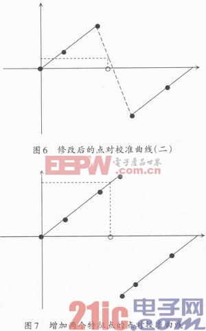 通过线性方程进行分析,修改点对校准曲线,可以解决这个问题。修改点对校准曲线的方法是,将码值为非负整数的特征点保持不便,把码值为负整数的特征点换算成补码,然后将补码按照无符号值和原码值对应,构成新的点对校准曲线,按照补码的单调性和直线的平移性可知,这种方式的变换不改变计算的结果。