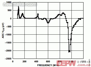 在调研之后,我们开发了针对抗辐射干扰的优化印刷电路板(见图3)。本应用笔记的“评估板原理图与PCB布局图”部分提供了评估板的原理图和布局图。使用此评估板和物料清单所列的元件时,测得的最大误差超过了e。图4显示了RF频率从80 MHz扫至1 GHz的情况下从AD7780读取的转换。测试期间,对称重传感器施加的重量保持恒定。