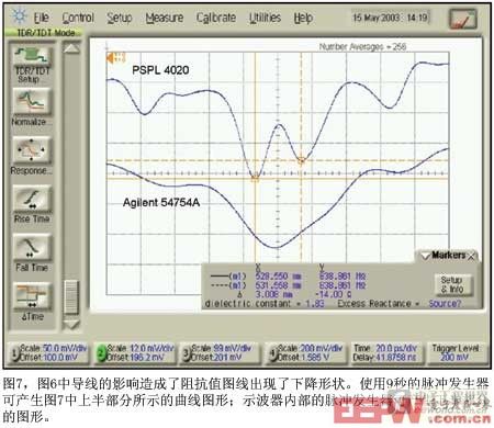 消除测试夹具的作用只是现代 TDR示波器软件的优点之一。Agilent 86100A 主机的软件可以用两个正脉冲获得差分 TDR 测量。在两个通道同时使用相同极性的脉冲,能确保两个通道采用相同波形作激励。困难的是使一个脉冲的上升时间和下降时间精确对应,因此差分脉冲生成会导致一种共模误差。Agilent 示波器发出两个相同极性的脉冲;然后它的软件作反转并重叠在响应上,这样得到的波形就与一个差分 TDR 完全一致,但误差较小。Agilent 的一名产品经理 Joachim Vobis 称:“由于电子电路匹配性好得多,提高了精度。”